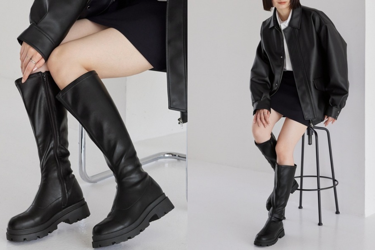 トレンド感のある厚底とロング丈が特徴のストレッチロングブーツ。安定感のあるヒールは、美脚効果や脚長効果が期待できます。つま先は幅広いテイストにマッチするベーシックなラウンドトゥ。サイドファスナー付きで着脱が簡単なのも嬉しいポイントです。素材には、キメが細かくマットな質感の合成皮革を採用しており、高見えする仕上がりに。ミニスカートやショートパンツとの相性はもちろん、パンツをブーツインするクールなスタイリングも楽しめます。