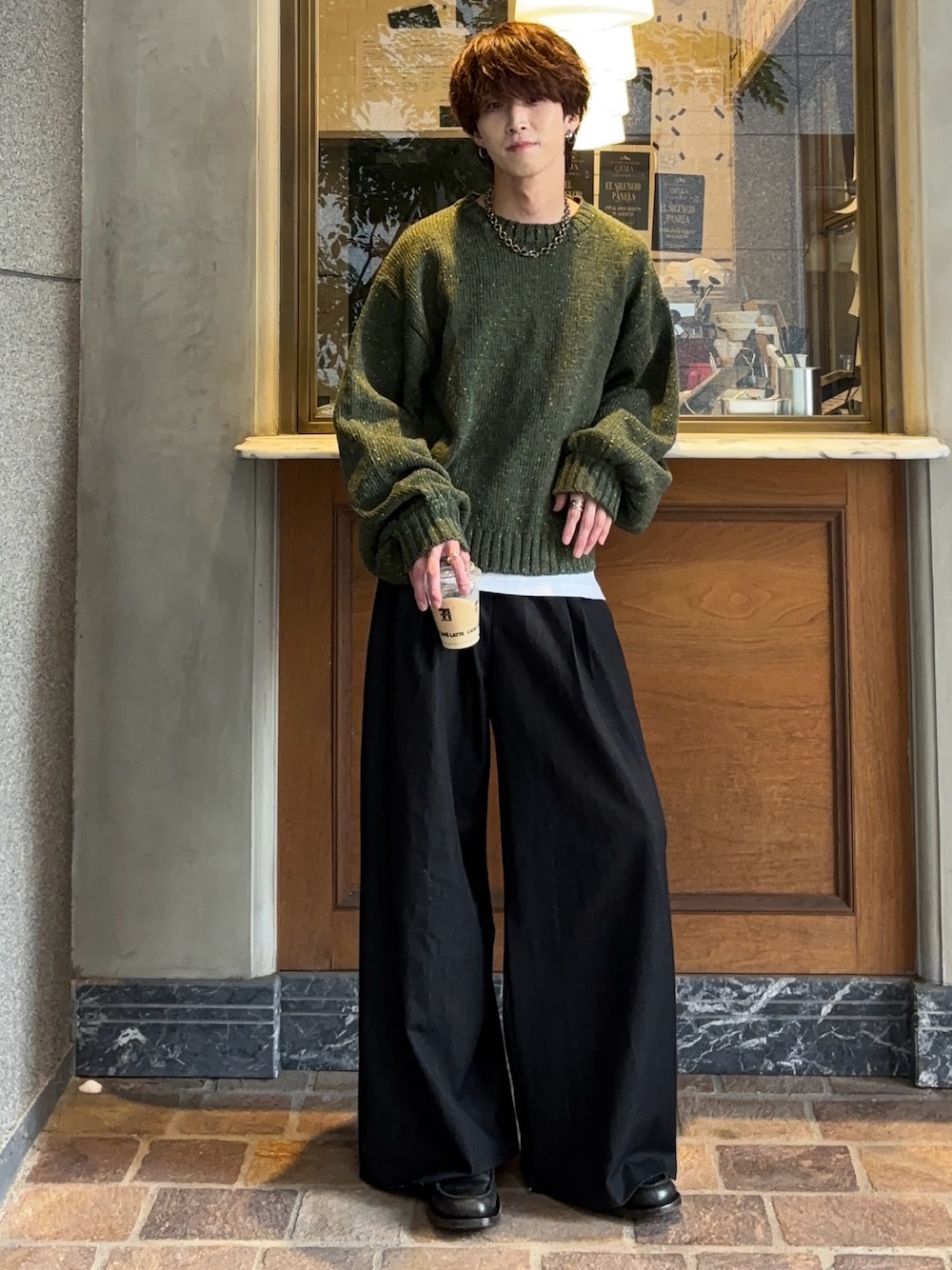 ニットやスウェット、シャツなどを主役に、様々なコーディネートを組むことができます。